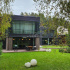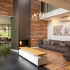 - Фасад, напоминающий кору деревьев, и панорамные окна стирают грань между домом и природой. Вы живете в лесном пейзаже, не выходя из гостиной.