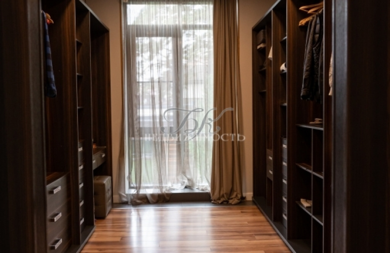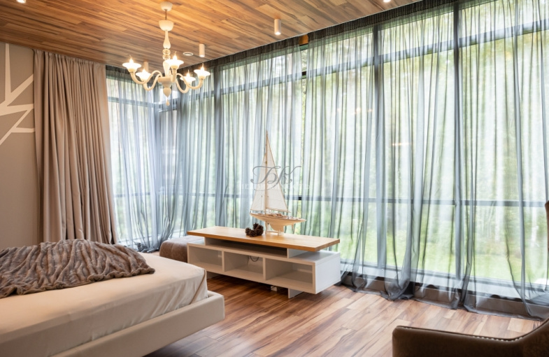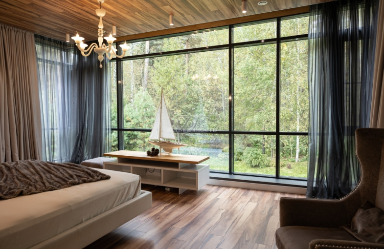 - Мастер-зона на втором этаже: Спальня с видом на лес, гардеробная как из журнала