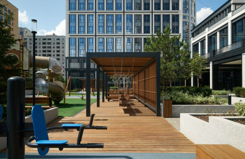 Внутренний двор "Richmond Residence" продуман и спланирован до мелочей - здесь предусмотрены функциональные зоны для активного отдыха детей и взрослых, территория воркаута, уединенные уголки для отдыха, а ландшафтное озеленение, живая изгородь и плоскостной струйный фонтан создают уют и ощущение оторванности от городской суеты.