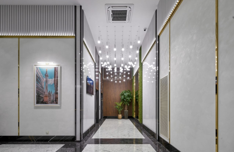 В холле дома разместился единый reception, организованный по принципу пятизвездочного отеля, готовый помочь в решении вашего вопроса 24/7.